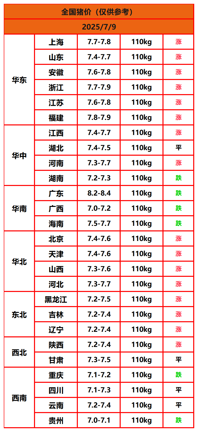 今日猪价 | 2025年7月9日全国猪价行情一览表!