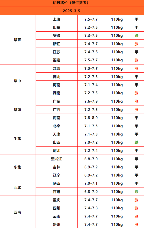 今日猪价 | 2025年3月5日全国猪价行情一览表!