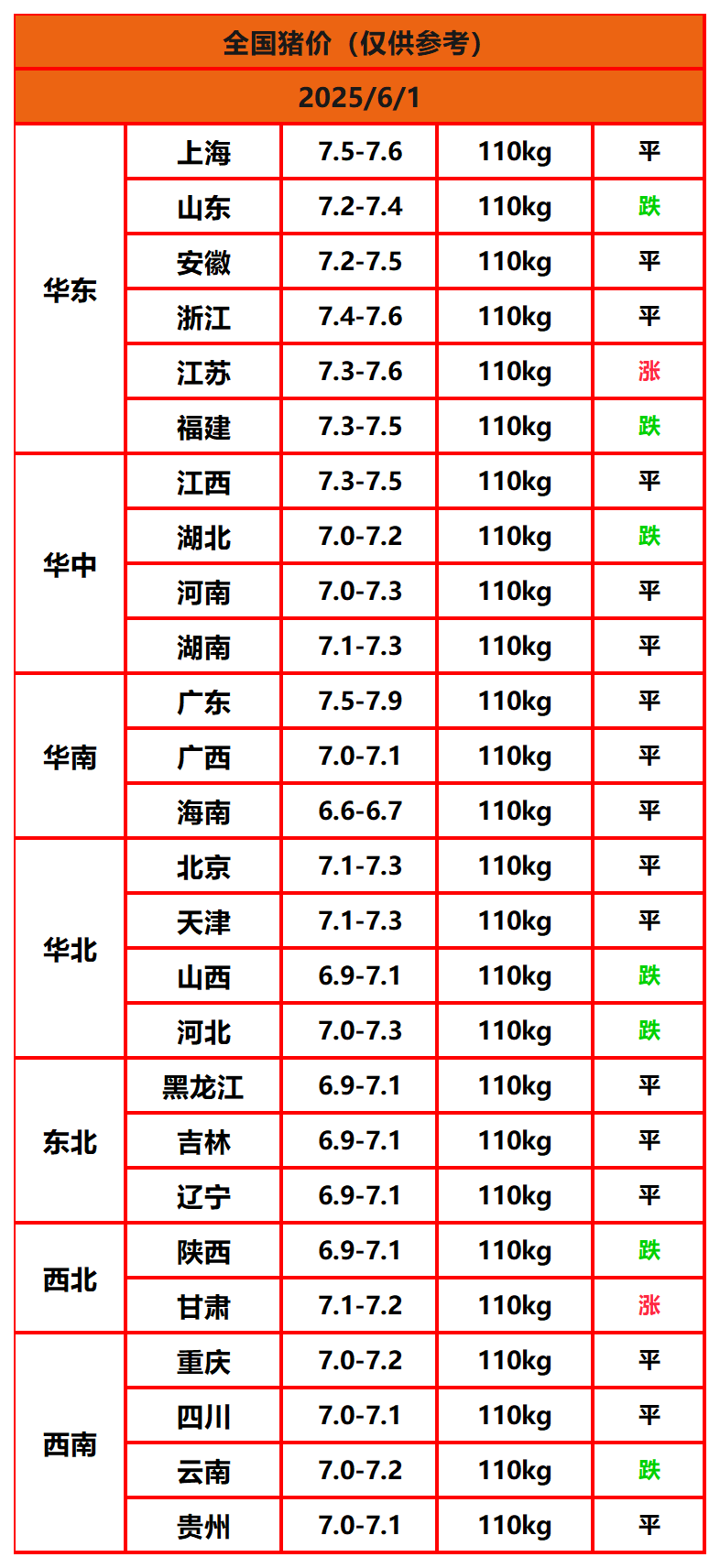 今日猪价 | 2025年6月1日全国猪价行情一览表!