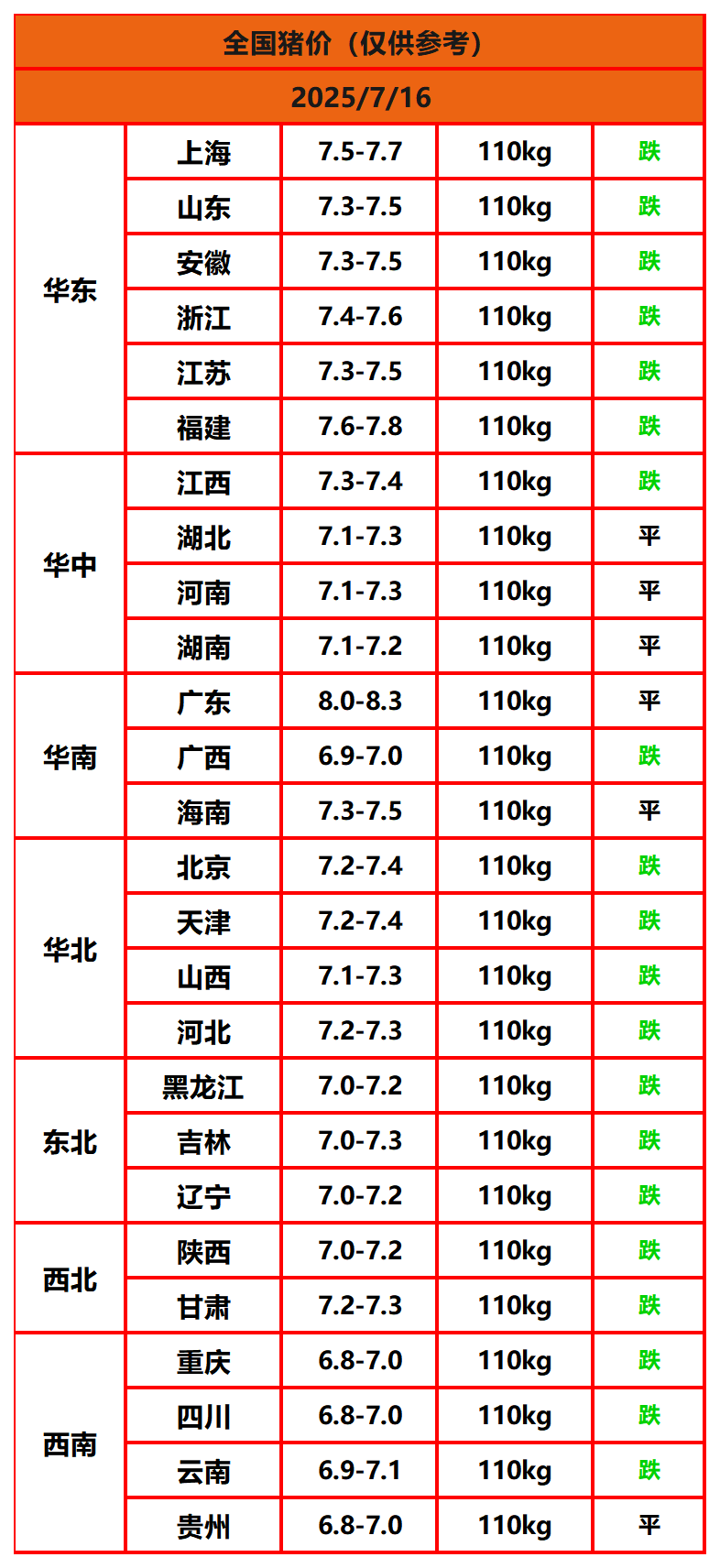今日猪价 | 2025年7月16日全国猪价行情一览表!